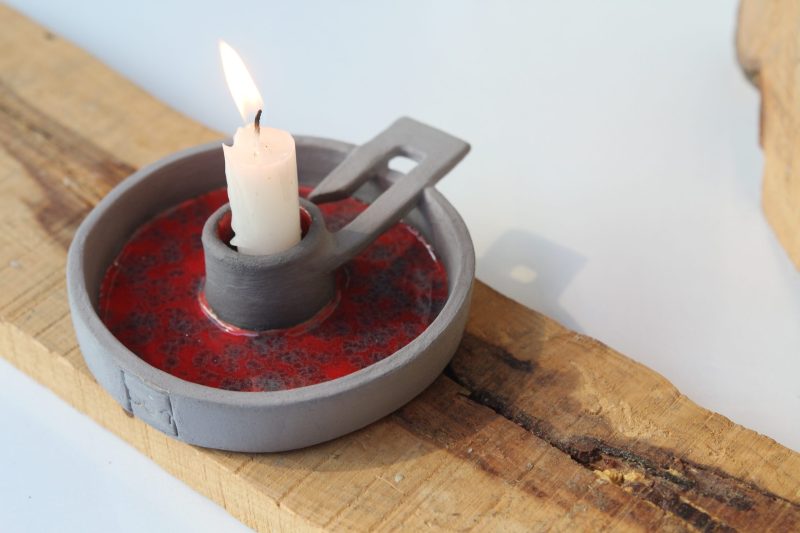 Ekim 16, 2022El Yapımı Seramik Şamdan | Dekoratif Mumluk | Doğal ve Şık Ev Dekorasyonu | Gri Kırmızı