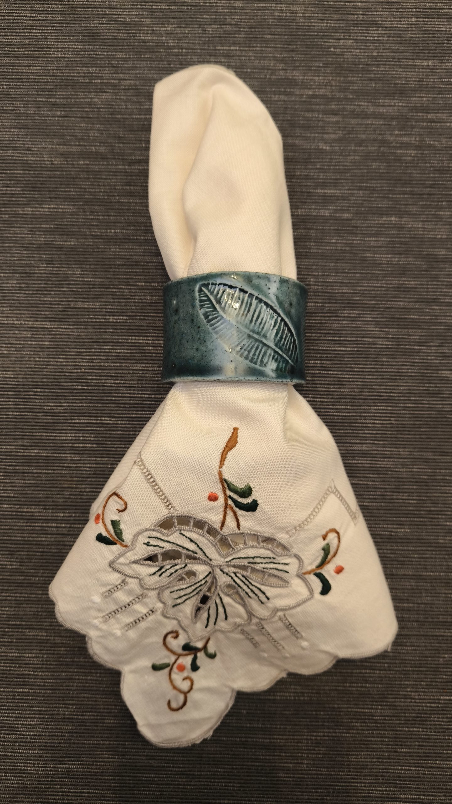 Yaprak desenli seramik peçetelik, doğanın zarafetini sofralarınıza taşıyor. Organik formlar ve doğal dokularla süslenen bu özel tasarım, doğallığı ve sadeliği sevenler için ideal.