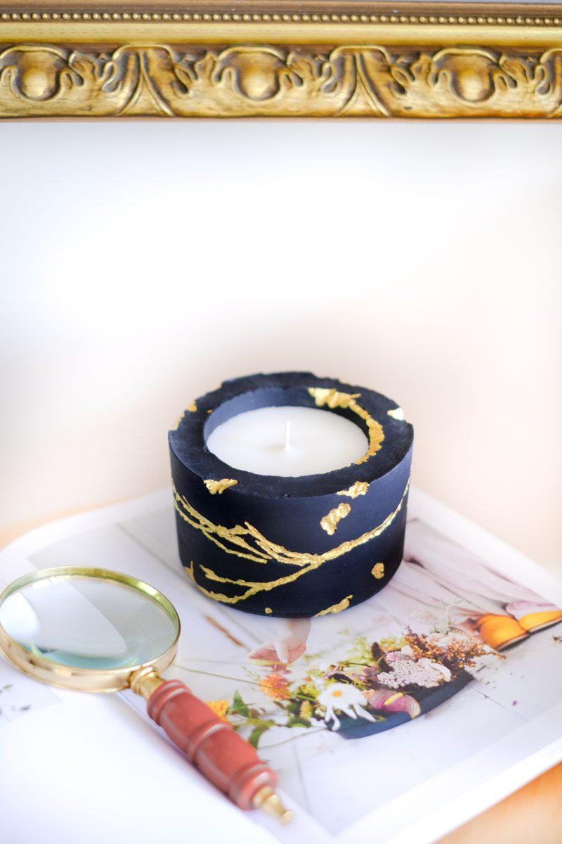 Doğal ve Şık: Siyah Beton Gold Süslemeli Soya Mumu